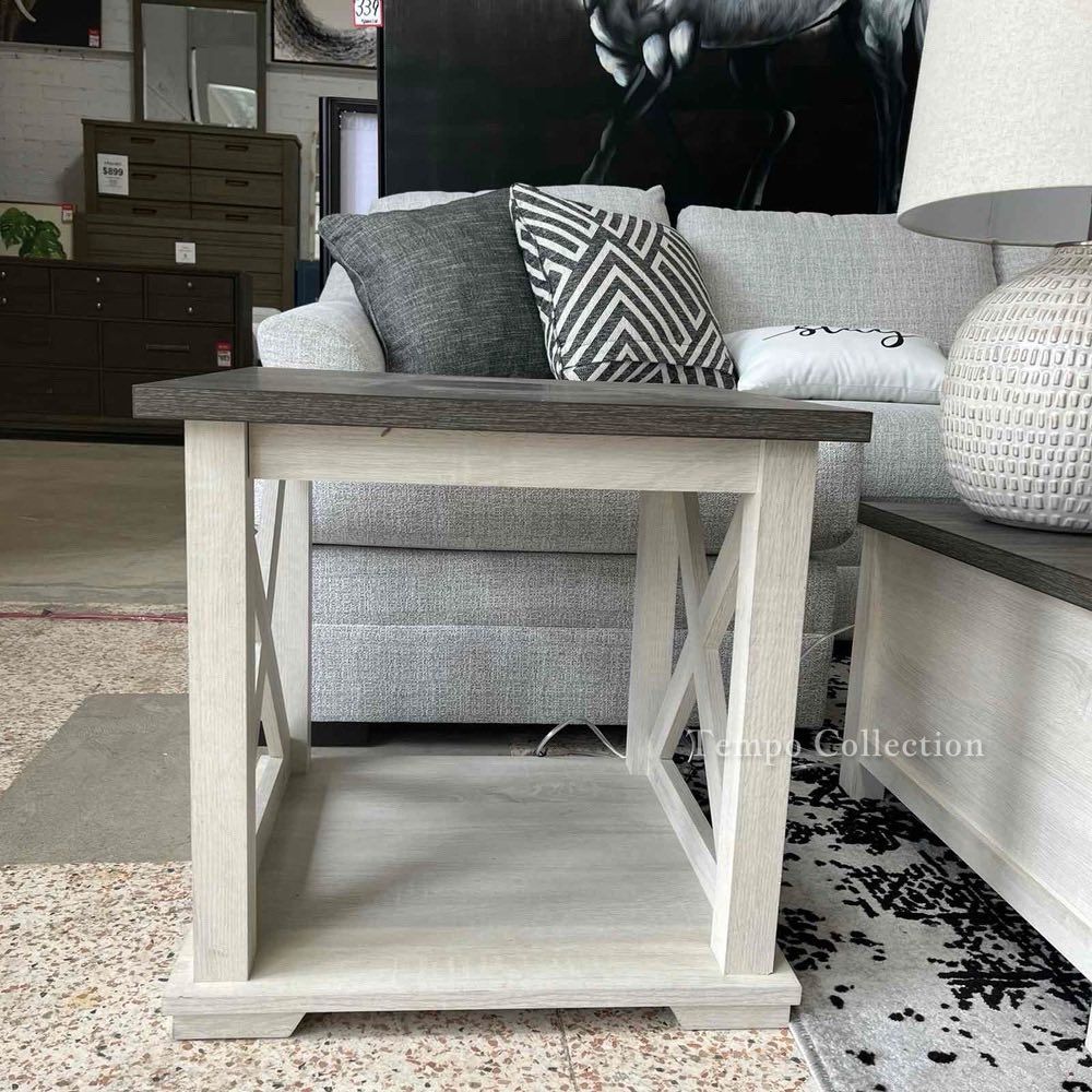 Square End Table, Gray and Antique White Color, SKU#10T287-2