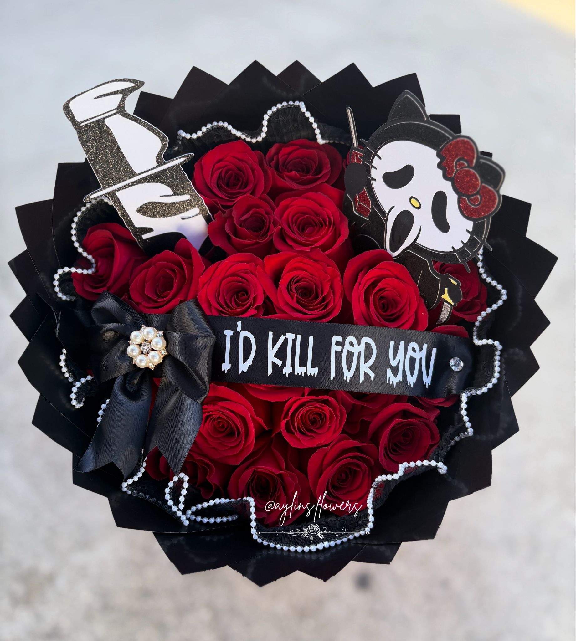Spooky Hello Kitty Ramo Buchon Flower Roses Bouquet Roses