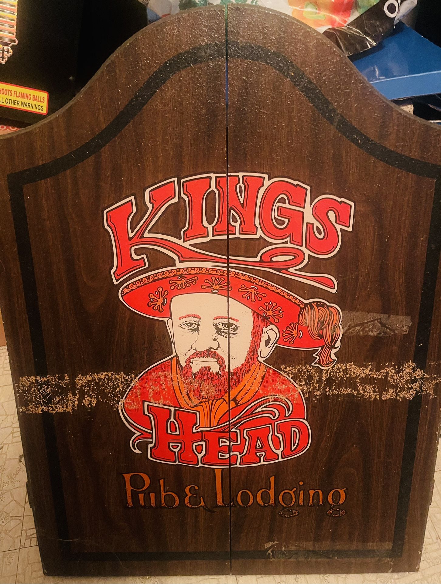 Kings Head Pube Lodging DART BOARD . Very good condition dart board has horsehair the natural fiber traditionally used in bristle dartboards. OBO