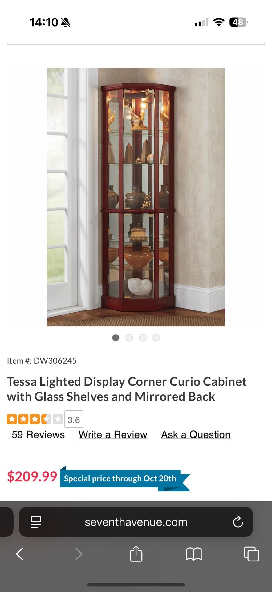 Tessa Lighted Display Corner Curio Cabinet with Glass Shelves and Mirrored Back