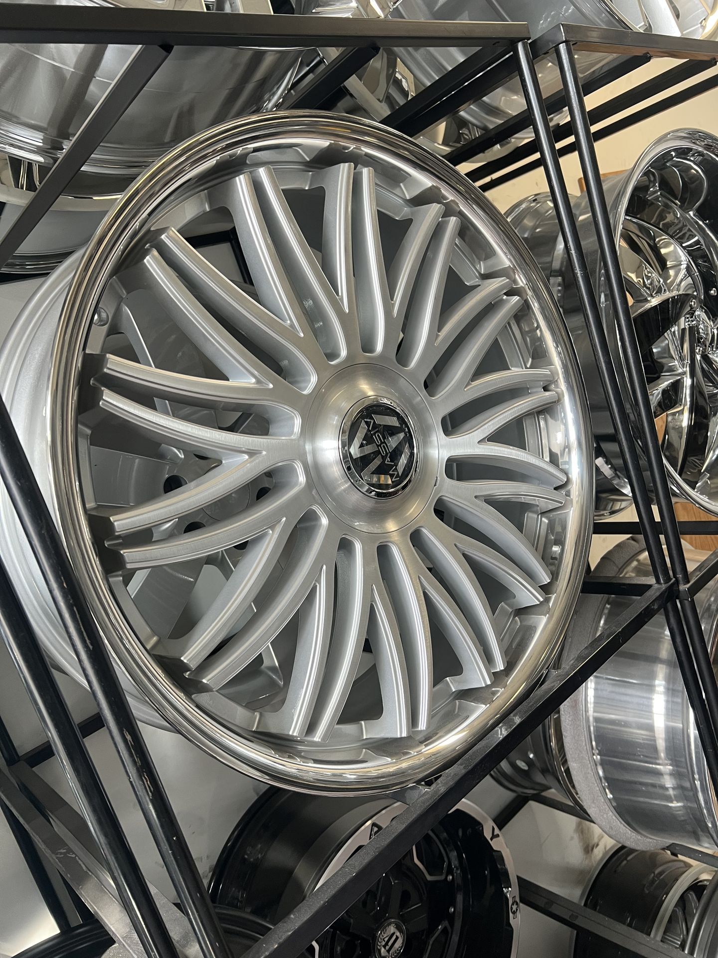 24 inch. 5 lug. 5x115 5x120. Mid offset. $1799. Just rims. $2499 Rims. Tires. Sensors. Lugs. Locks.