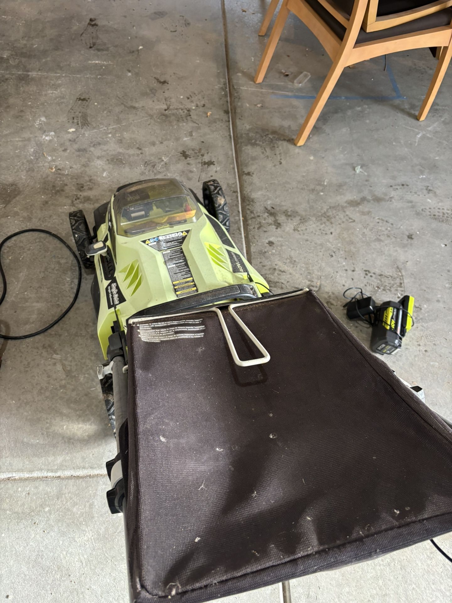 Ryobi 40 V cordless lawnmower with battery charger problem free reliable mower