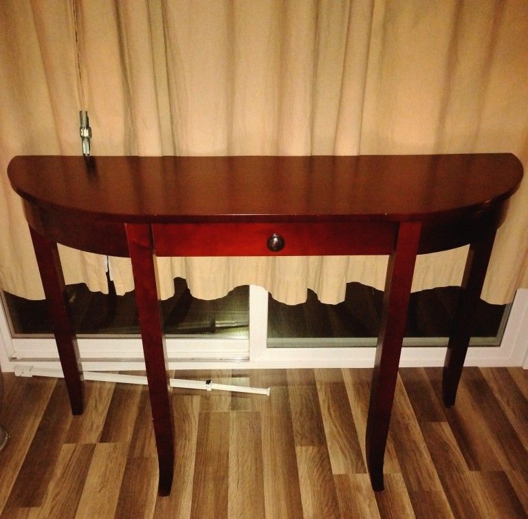 Perfect condition Cherry wooden half moon console entry table w/one drawer storage Solid wood Measurements are: 31" H x 47.5" L x 14.5" W