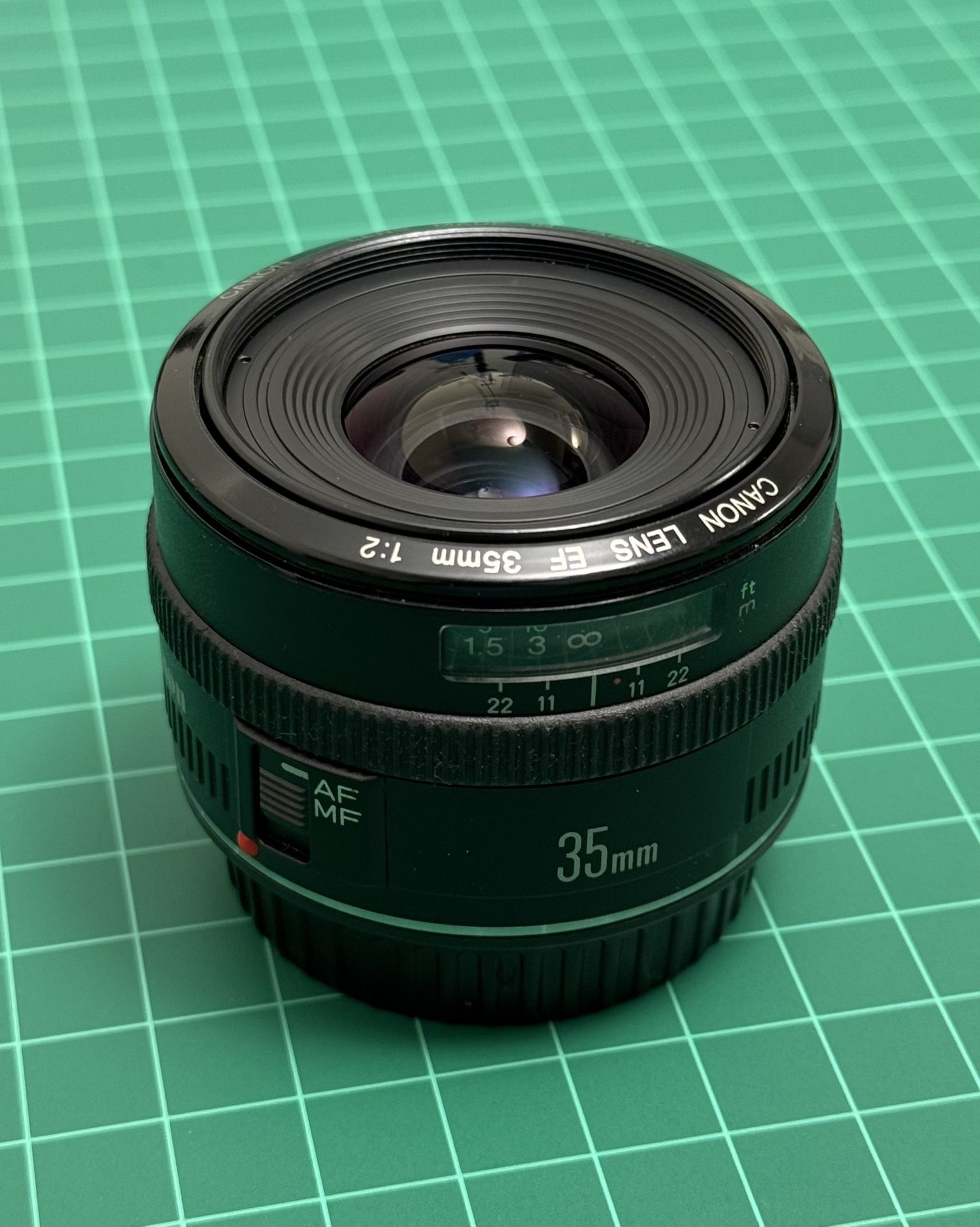 Used 35mm f2 for Canon EF Mount. Can be used on Canon mirrorless RF mount with an adapter. In working condition with minor scratches and scuffs. Glass is clean with NO scratches and the lens mount also has NO damage. $50