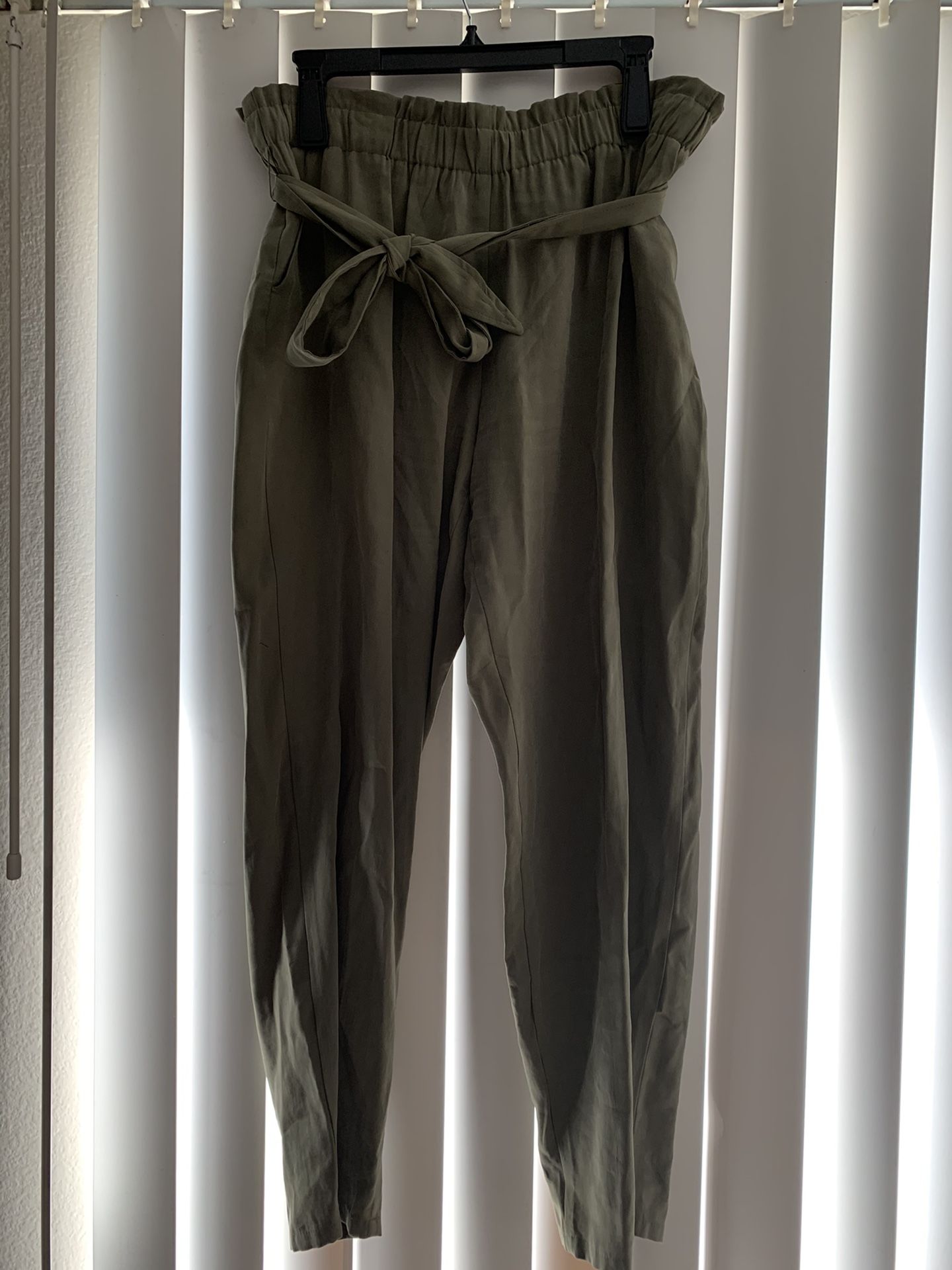 BCBG olive green cotton pants with belt. These pants have side pockets. Super soft and comfortable. Never worn. Size large
