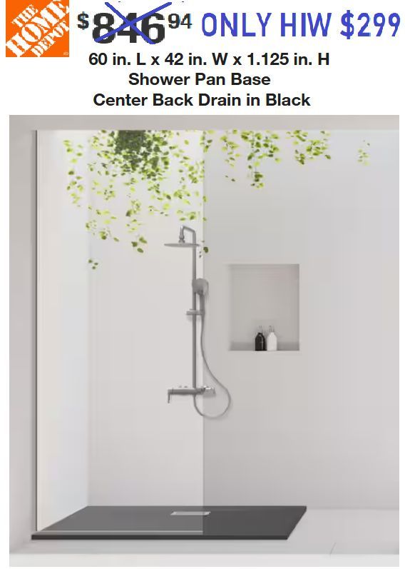 60 in. L x 42 in. W x 1.125 in. H Solid Composite Stone Shower Pan Base with Center Back Drain in Black Onyx Sand