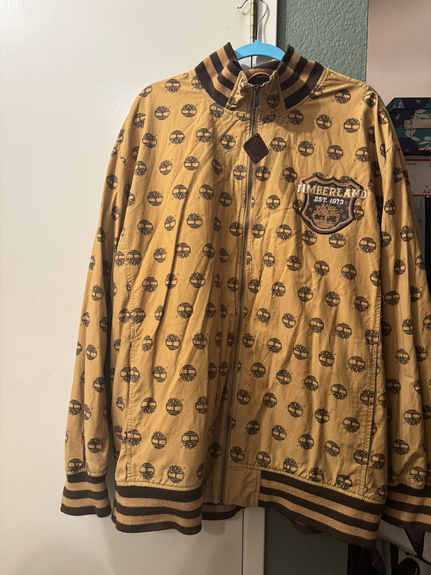 Vintage Timberland Bomber Jacket Full Zip Brown/Yellow with Logo Design Size XL