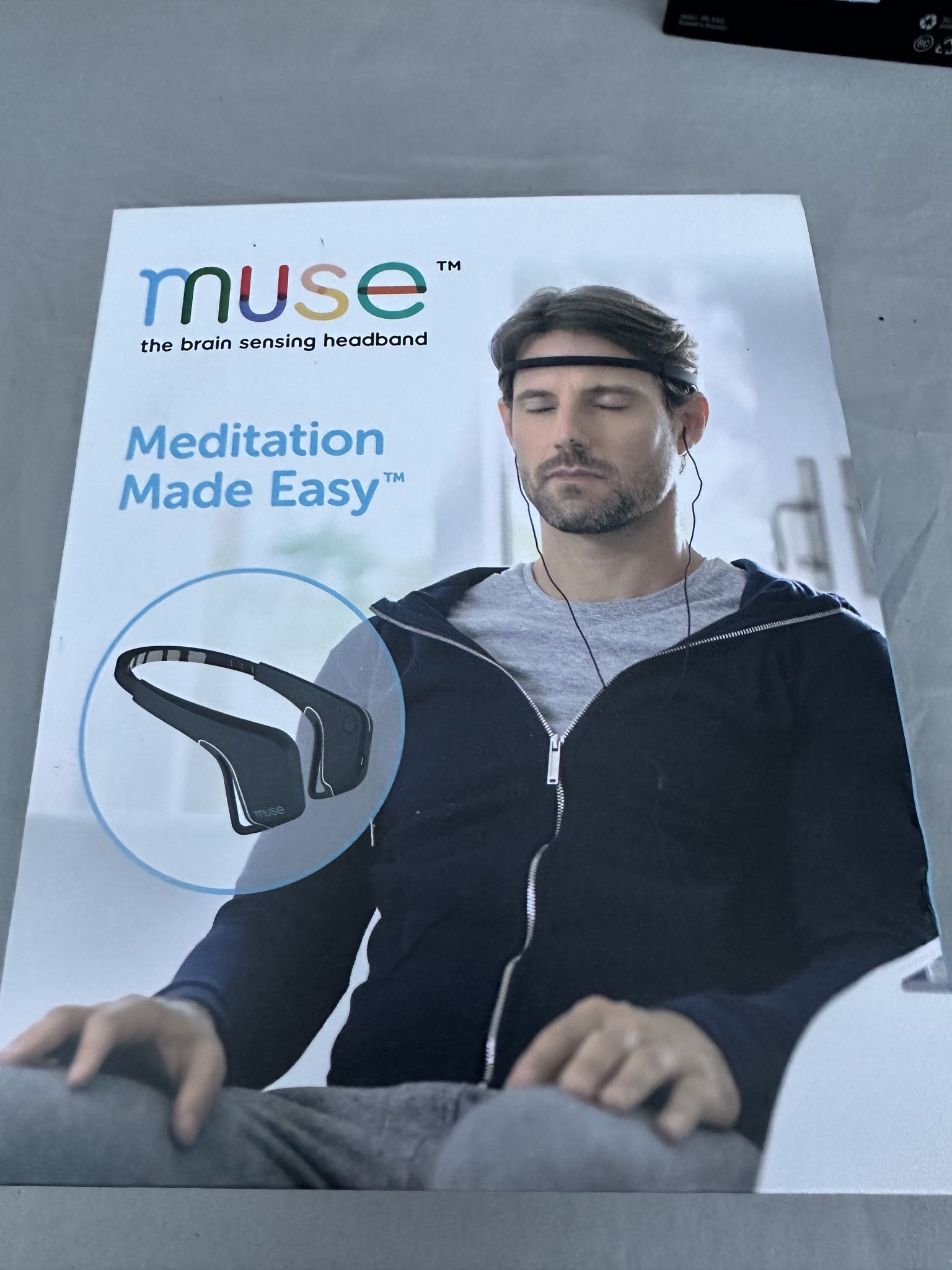 MUSE 2: The Brain Sensing Headband - Meditation Tracker Muse is a training tool to help you improve your meditation practice. The Muse: Meditation and Sleep app that works in tandem with the headband is available for free with Apple Store and for Google Play Store. Connect your charged Muse 2 headband to your app via Bluetooth, fit it comfortably and put on your favorite headphones. Select the Mind, Heart, Body or Breath Meditation experience you wish to be immersed in. Close your eyes and breathe—once the headband calibrates, you’ll hear the soothing sounds responding to the fluctuations of your mind and body. Learn how to tune in and relax your mind and body with the guidings soundscapes that cue you to find your focus. Once complete, you’ll be able to review post-session reporting in the app. Set reminders and goals, level up with challenges, and measure your progress in the Muse app to stay on track with your meditation practice. used. in good condition. you can offer your price.