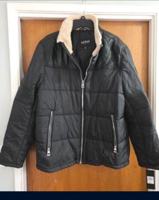 Men's Guess Puffer Jacket Black XL Vegan Leather