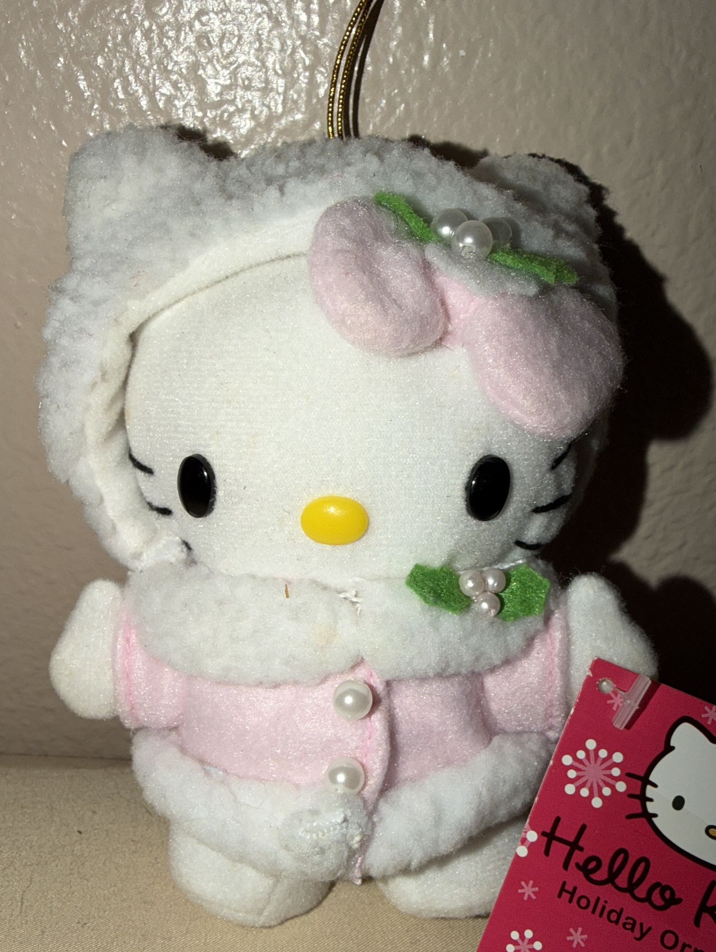 Vintage 2005 Sanrio Hello Kitty Pink Christmas Plush Doll Ornament 4” NWT