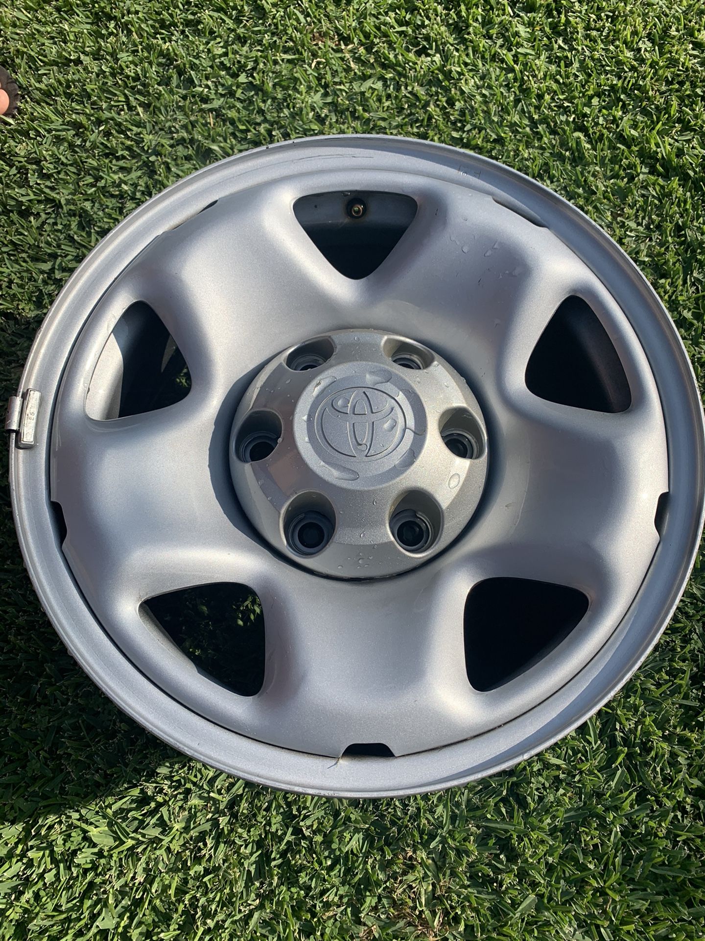 Set of 4/ 2008 Toyota Tacoma Stock Rims . 16inch, includes wheel caps. Great condition, slightly used. Some wheel caps have light scratches.