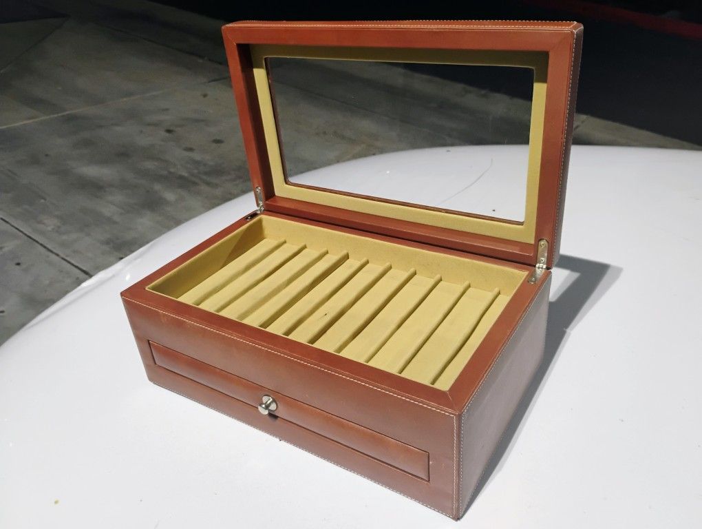 Glass Top Two Drawer 22 Slot Leather Watch Display Case