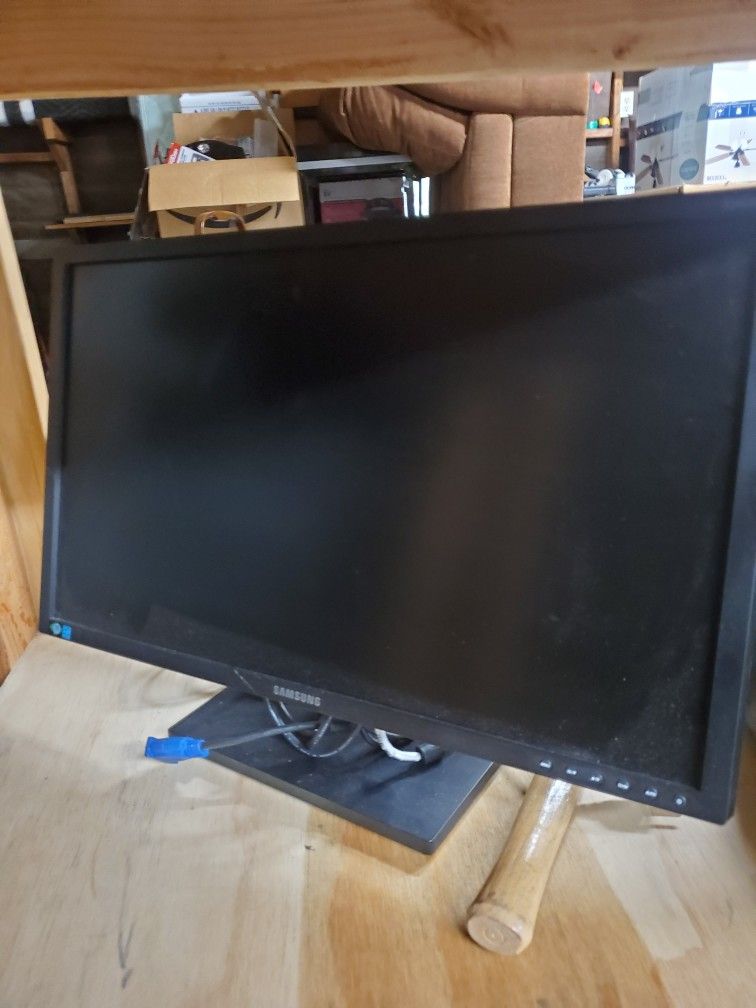 22" inch computer monitor screen. Samsung. VGA, Display port, and one other input connection. Does not have HDMI. Works perfectly. Comes with VGA cable and power cable. I have 2 in total.
