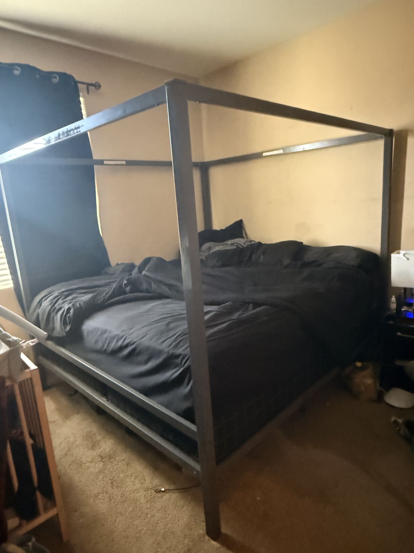 Pick up off 107th Ave & lower buckeye rd Frame only, I do not have any drapes sorry! Already taken down ready for pick up I had a box spring under my mattress because I had them already it can be used without box spring