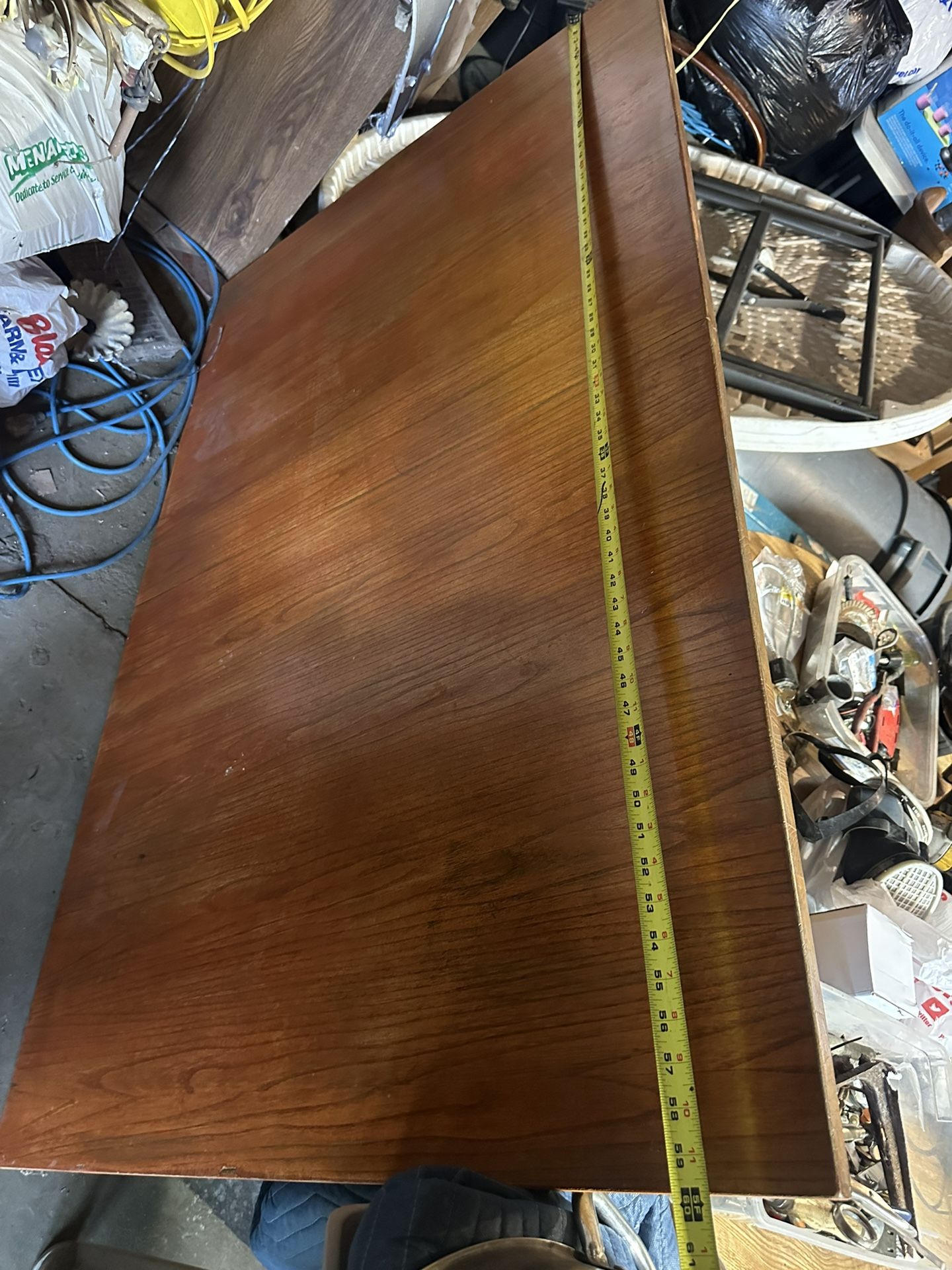 All solid wood. No cracks or chips. 5f table with 1ft 1/2 extension to add 6 chairs.