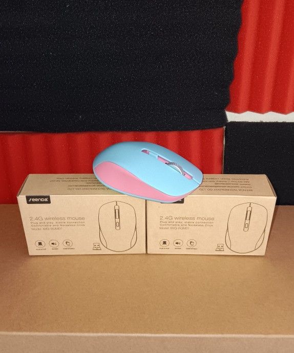 New 2 Pack Bundle Together Color: Pink & Blue 2.4G Wireless mouse Plug and play, stable connection Comfortable and Noiseless Click Model: WG-WJM01