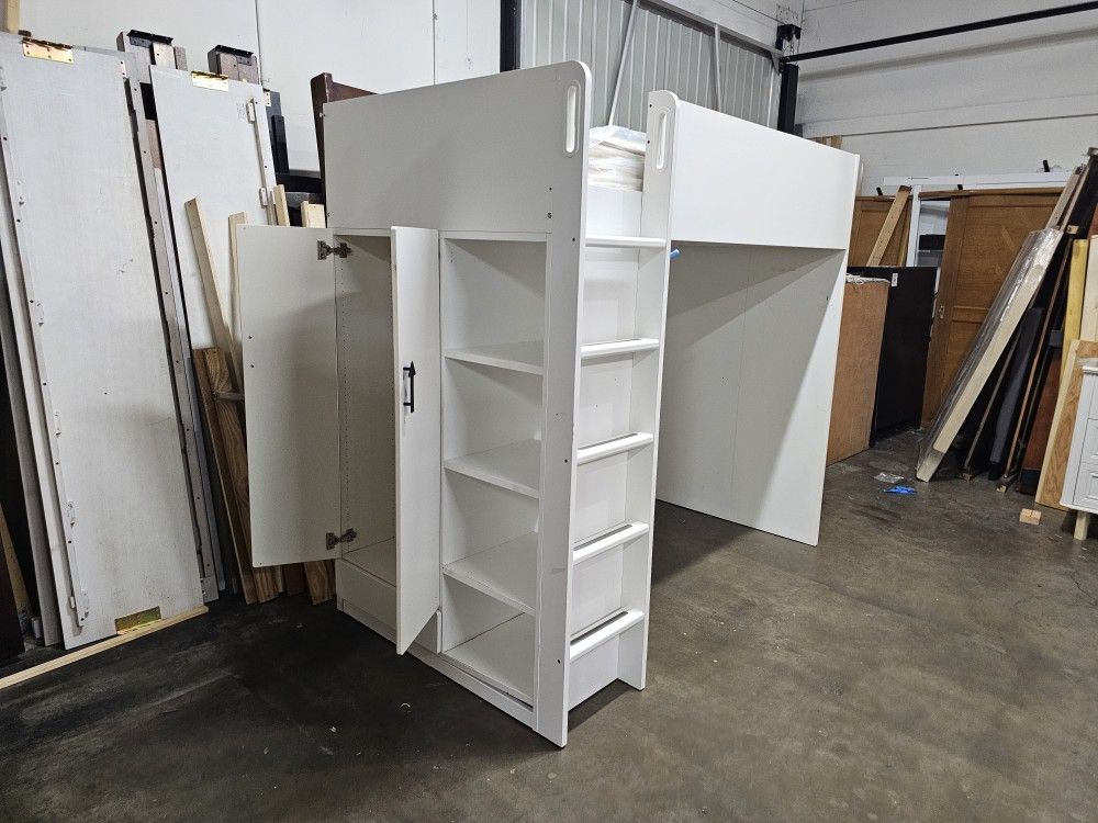 Twin loft bed Mattress Included Everything used good condition Has closet and shelves $240 Firm price Delivery available for extra fee
