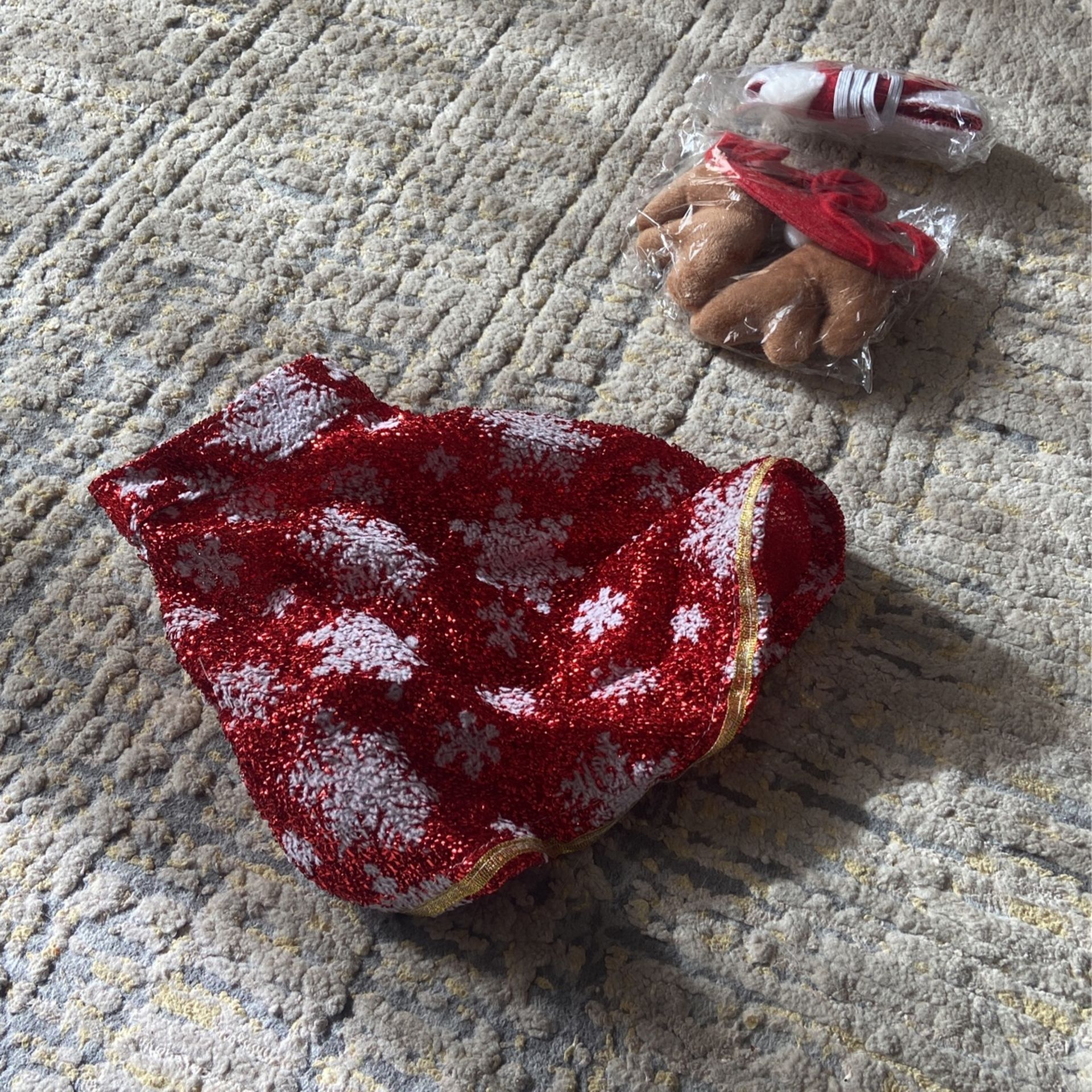 Christmas Costume Set For Small Dog. (Includes Hat, Deer antlers and Christmas cloak.) 5$ There’s a dog bowl with a suction cup. 5$ There is also a feeding dispenser. 15$ Lastly, there is a Thanksgiving sweater for a large dog. 5$ All brand new.