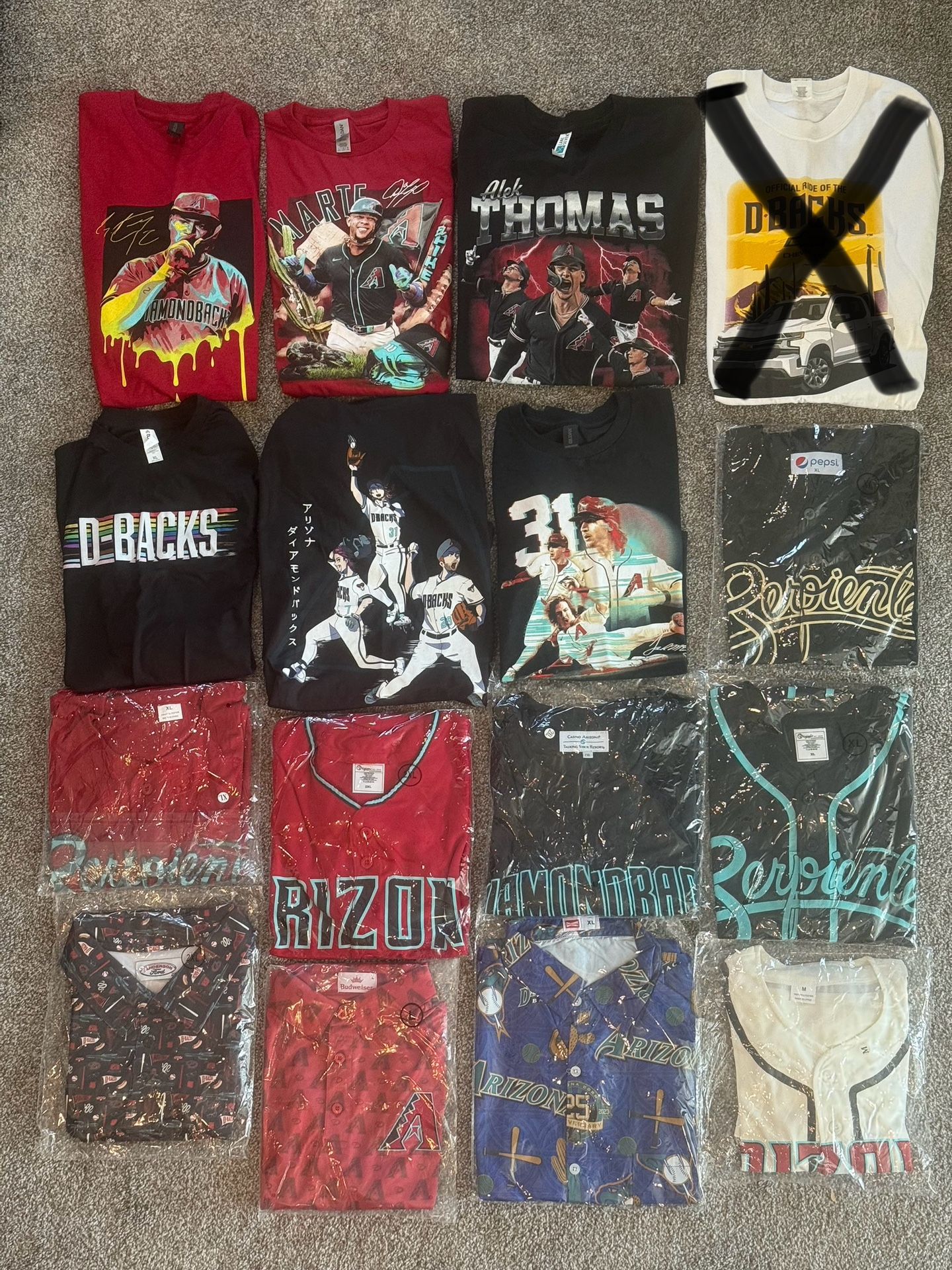 Brand new Arizona diamondbacks replica jerseys, Father’s Day dress shirts, and t-shirts. Asking $40 for jerseys, $20 for dress shirts, and $15 for t-shirts. Just make me an offer close and it’s yours. Please let me know if u are interested or have questions. Thank u.