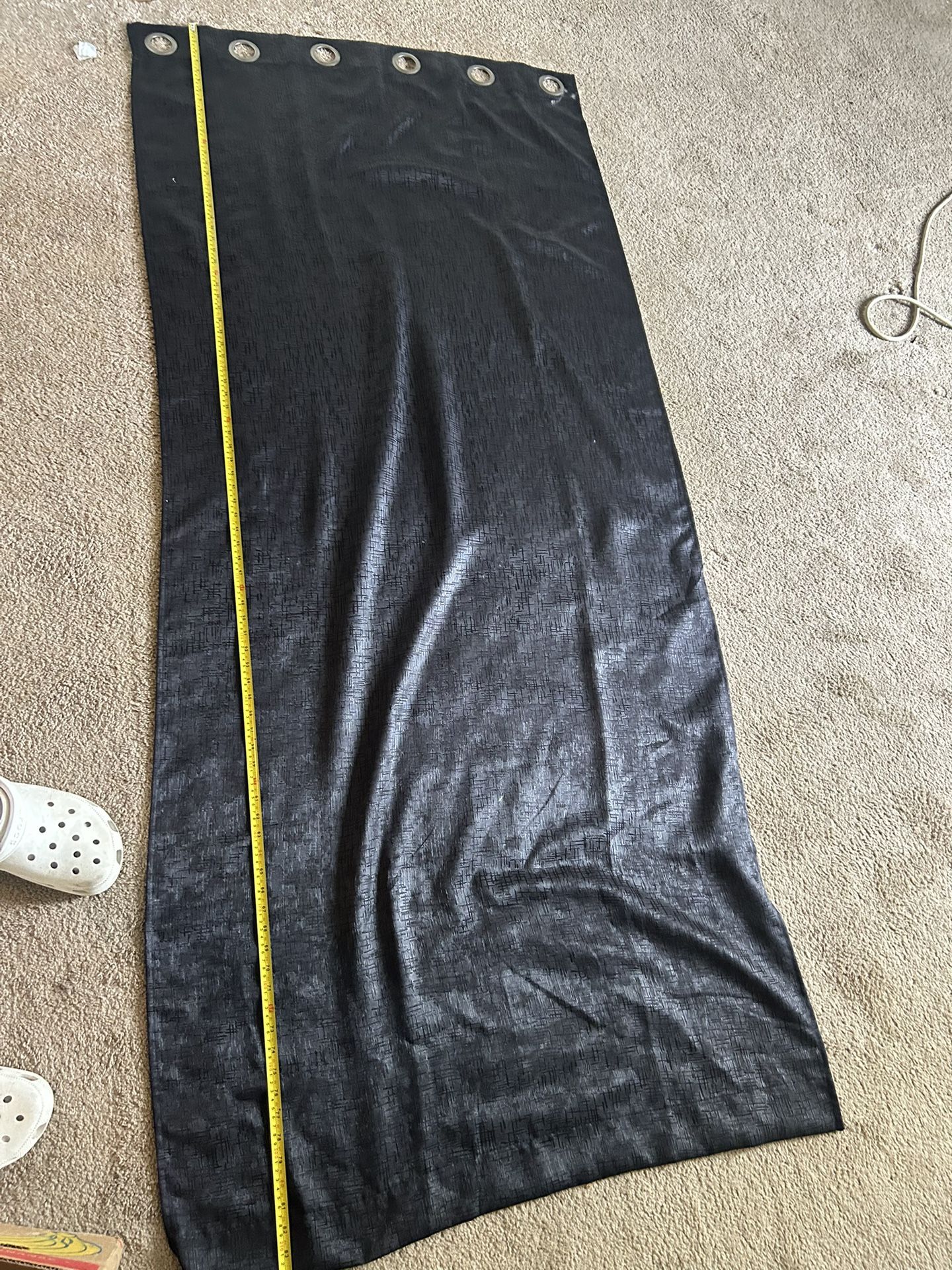 About 3ft wide, 7 feet long. Blackout curtains, great for blocking out light, keeping room warm or cool. 30 bucks for all 4, or ten bucks each.