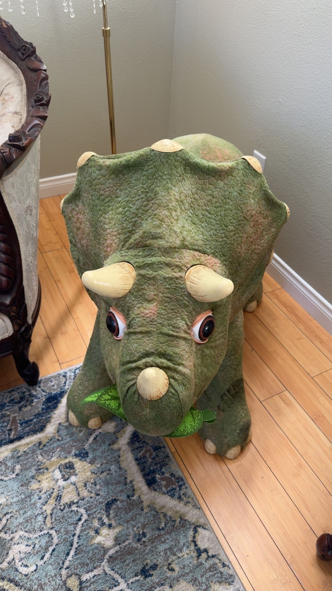 Kota dinosaur in excellent working condition. Head, mouth, and eyes move.cones with leaf .Makes noises. Description online: “An awesome, prehistoric friend, KOTA The Triceratops Dinosaur from Playskool is ready to accompany your imaginative child on all kinds of adventures. With lots of sound effects, including music, munching, stomping, and roaring, this baby dinosaur is a realistic creation. He even moves his head and blinks his eyes. KOTA is built so that curious kids three and older and up to 60 pounds can enjoy a bouncing ride.” size/weight. approximately 22 x 39 x 29 inches, 25+ lbs Offers welcome! Please send message to make an offer .