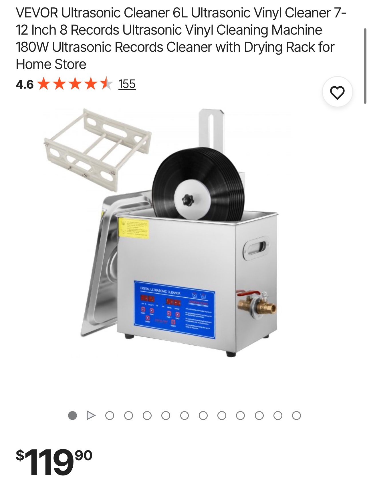 VEVOR Ultrasonic Cleaner 6L Ultrasonic Vinyl Cleaner 7-12 Inch 8 Records Ultrasonic Vinyl Cleaning Machine 180W Ultrasonic Records Cleaner with Drying Rack for Home Store