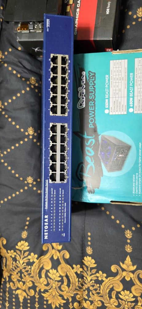 Netgear 24-port gigabit Ethernet switch. All ports working properly. Great for small business, office, or home lab setup. Reliable, business-grade networking gear. Clean condition. Cash only. Local pickup.