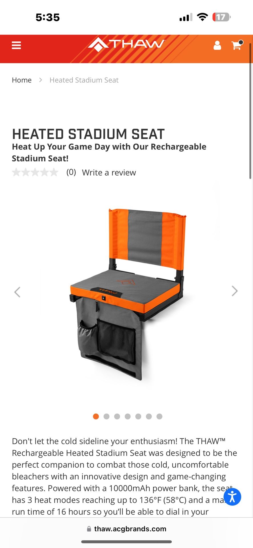 NEVER BEEN USED Powered with a 10000mAh power bank, the seat has 3 heat modes reaching up to 136°F (58°C) and a max run time of 16 hours so you’ll be able to dial in your comfort level and adapt to changing environments without having to take a break from the cold or miss a big play. Crafted with a full 2-inches of high-density foam you’ll have the right amount of padding and insulation to keep you comfortable well into the 4th quarter or even overtime.