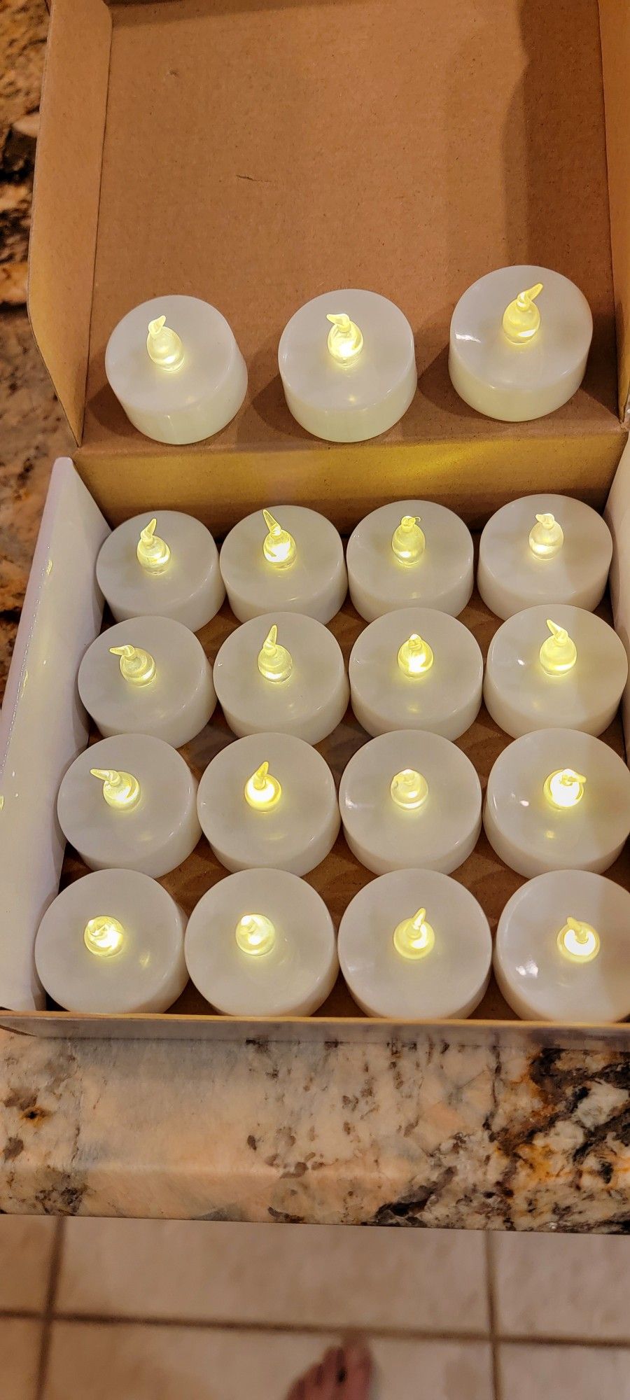 19 tea lights LED white lights with on / off switch In excellent condition Great for all your decorating needs