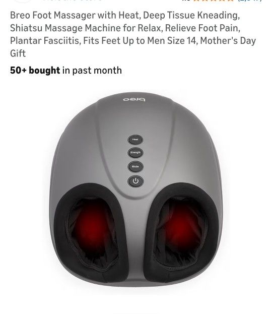Breo Foot Massager with Heat, Deep Tissue Kneading, Shiatsu Massage Machine for Relax, Relieve Foot Pain, Plantar Fasciitis, Fits Feet Up to Men Size 14, Mother's Day Gift