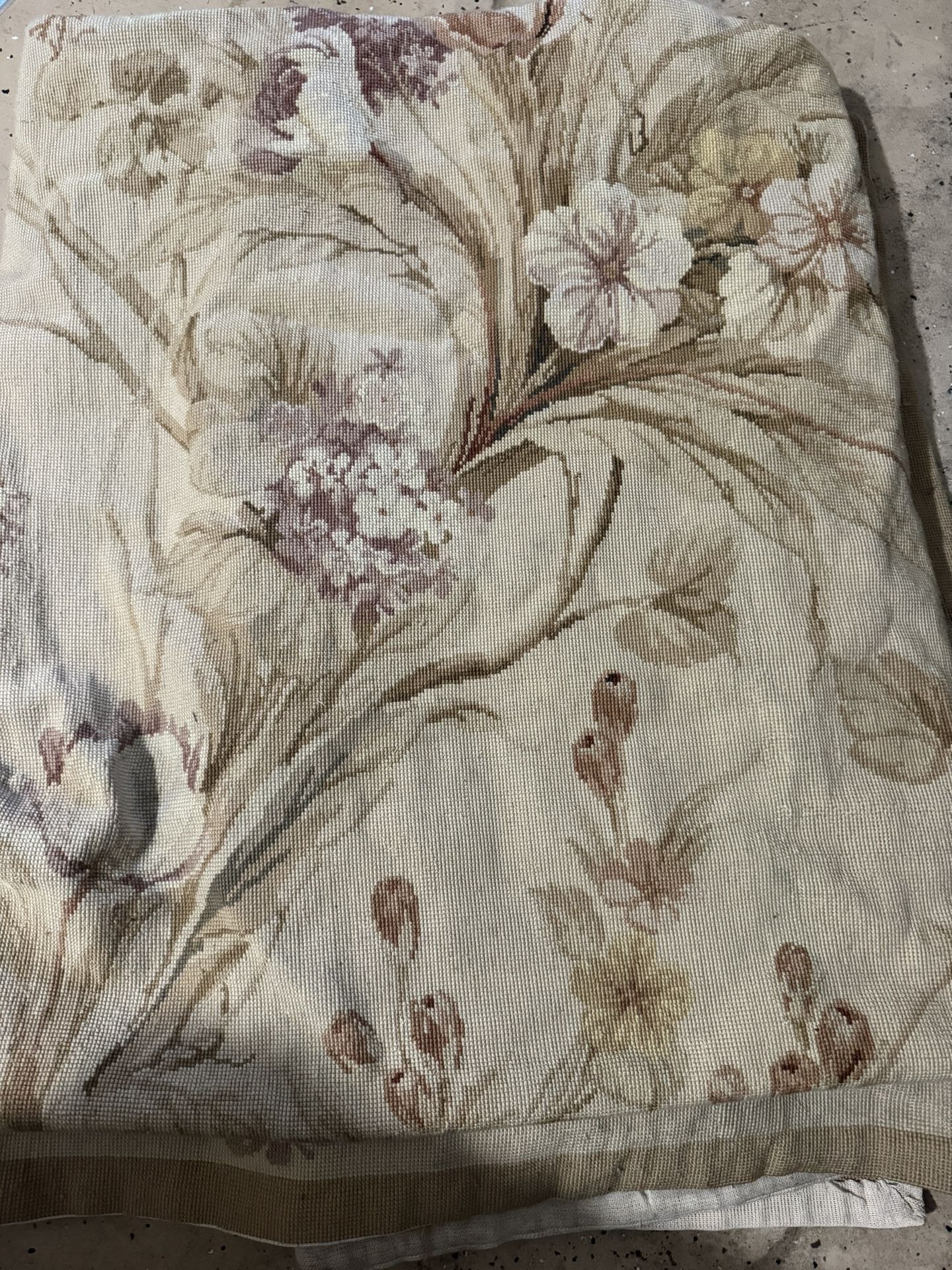 Large area rug soft muted floral covering VGUG Measures 138x102 Retails over 1K Carmel Mountain Ranch Text (contact info removed)