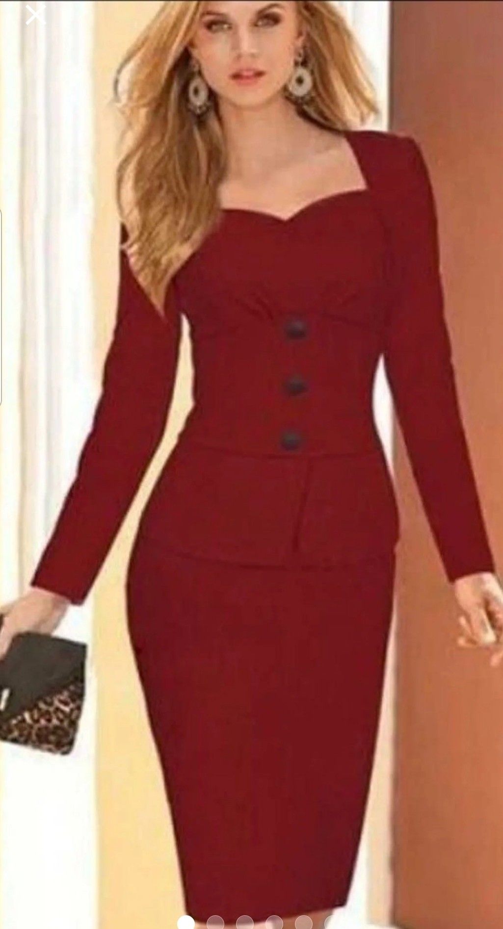Brand new maroon with black embellished buttons. Stunning dress and it is very slimming Size Large 100%polyester