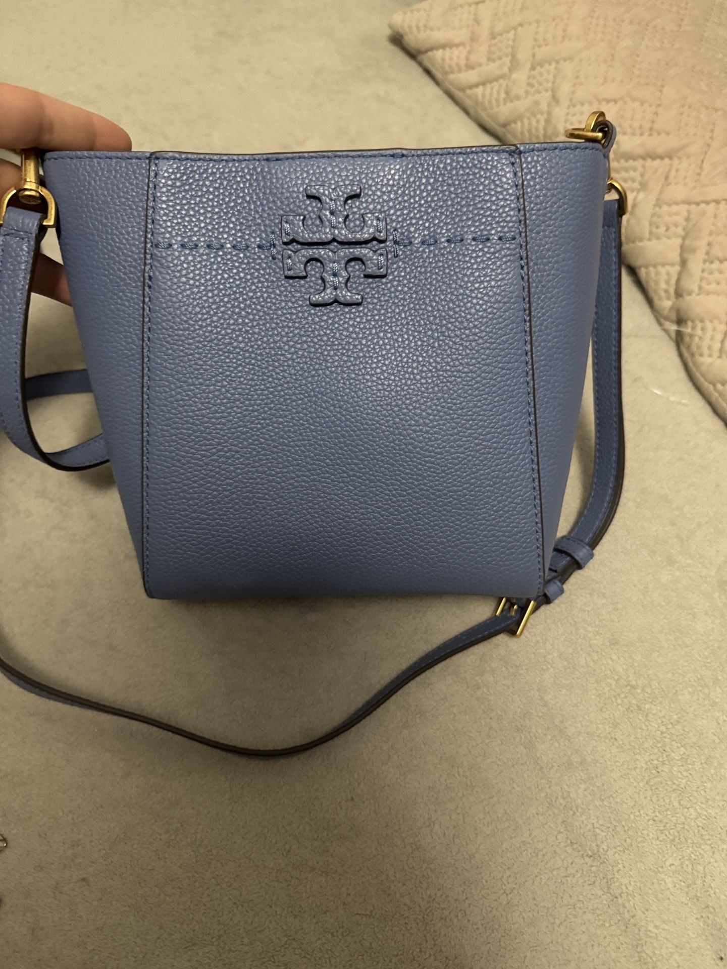 Authentic Tory Burch McGraw bucket bag Light blue crossbody small bucket bag brand NEW with tags and dust bag makes perfect Christmas gift firm price Burbank pickup