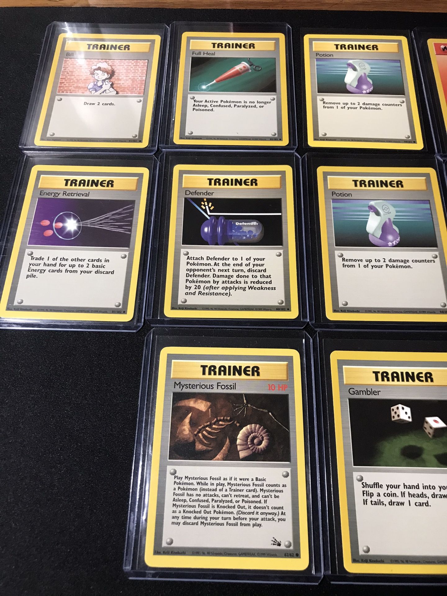 I have some trainer cards from base set and fossil set for sale. These cards have been sleeved for years and not played. All are in mint/ near mint condition Trying to sell as a lot but will do individual sales. Make an offer on price !