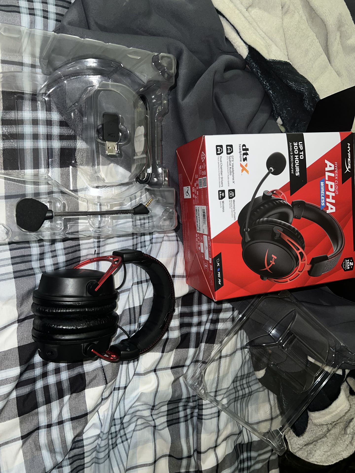 HyperX Alpha wireless headset that I’ve had for a while, just recently upgraded so I don’t need them anymore. The leather on top has been pealing for a while but does not affect comfort at all, very good quality and in decent shape considering the amount of time I’ve had them. Originally $200. Great for gaming or work. Works perfectly fine and comes with all parts including charging cable, mic, usb, and box.