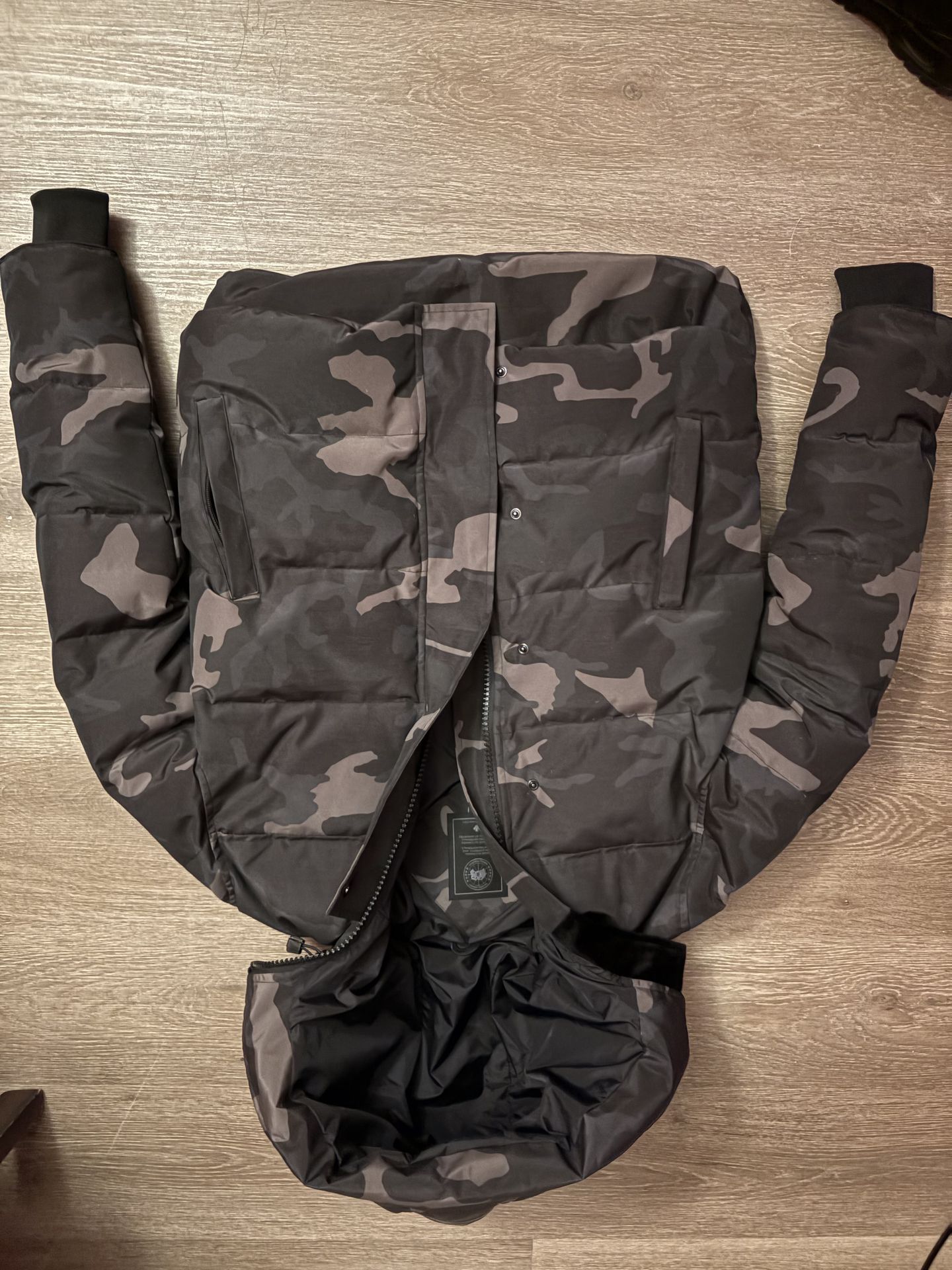 Canada Goose Camouflage Hooded Puffer Jacket Logo Full Zip Black Gray Men's
