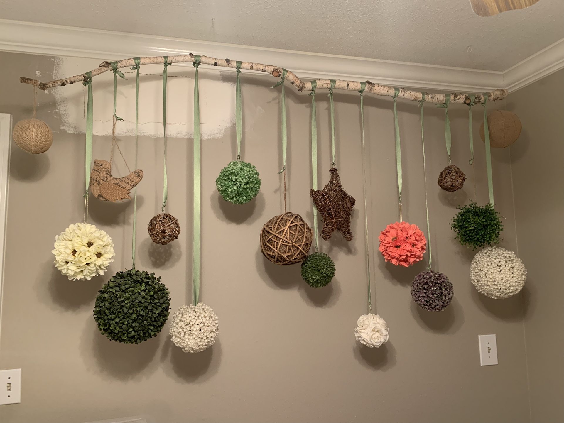 I made this for a baby shower and hung over the girt table & food table.. Turned out great. I purchased all of the balls from TPT. You could add more ornaments or balls to the birch branch. Could also be use for a Woodlands Animal Theme, Spring Theme, Fairy Garden Theme or many others.