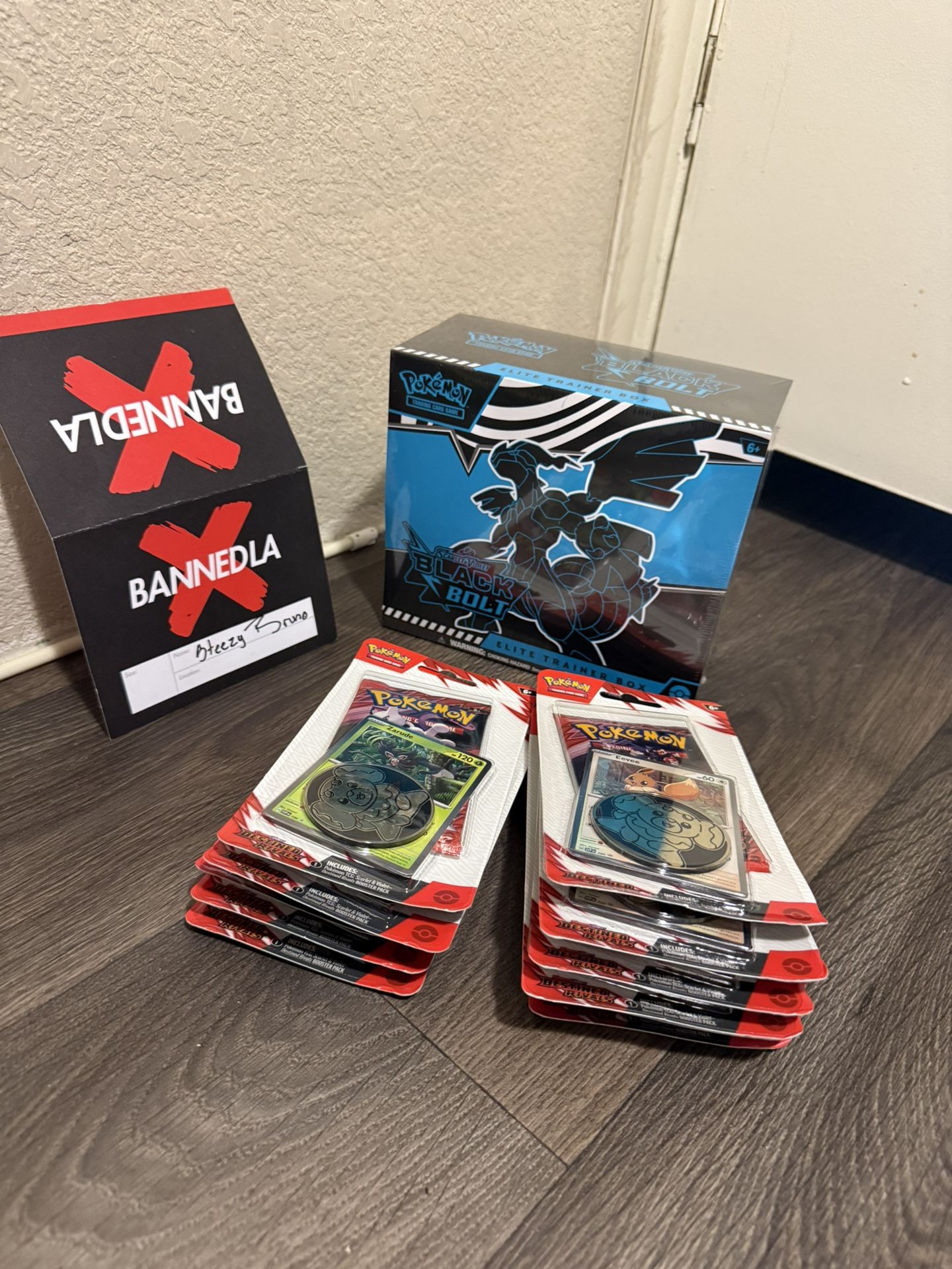 Sealed product. Black Bolt ETB $90 Destined rivals checkout blister (Zarude & Eevee) $15 each