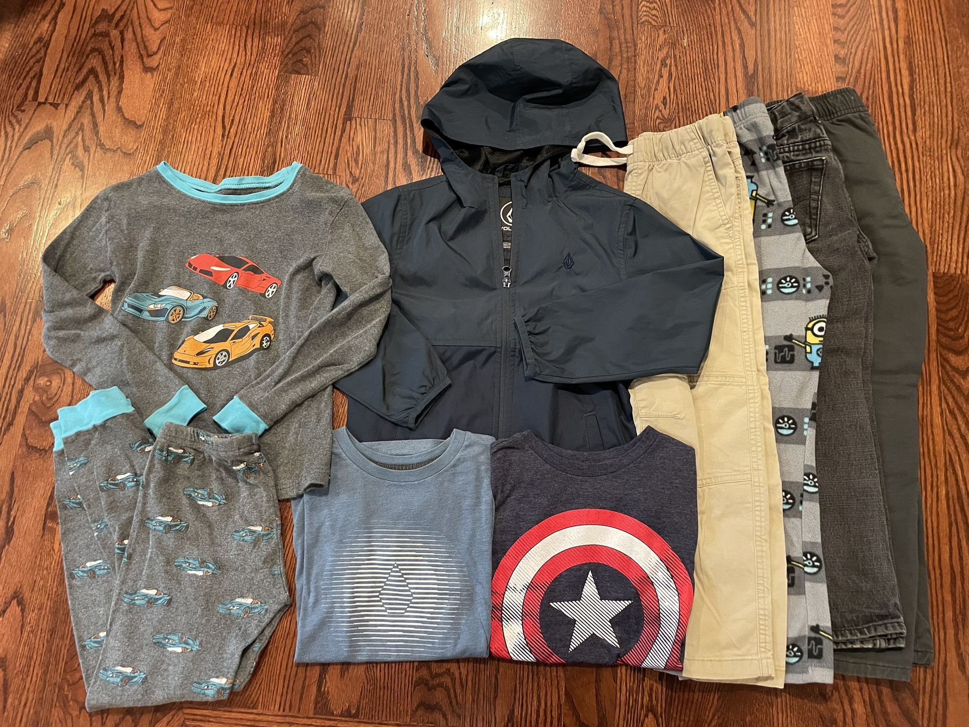 Includes a long sleeve two-piece pajama set, adjustable waist Levi’s jeans, lined Old Navy pants, Minion pajama pants, two Tshirts and a Volcom windbreaker jacket. Regardless of what size the item is tagged all fit like 6 to 6/7 for us. From smoke and pet free home. Pickup in Renton Fairwood area on the Kent boarder.