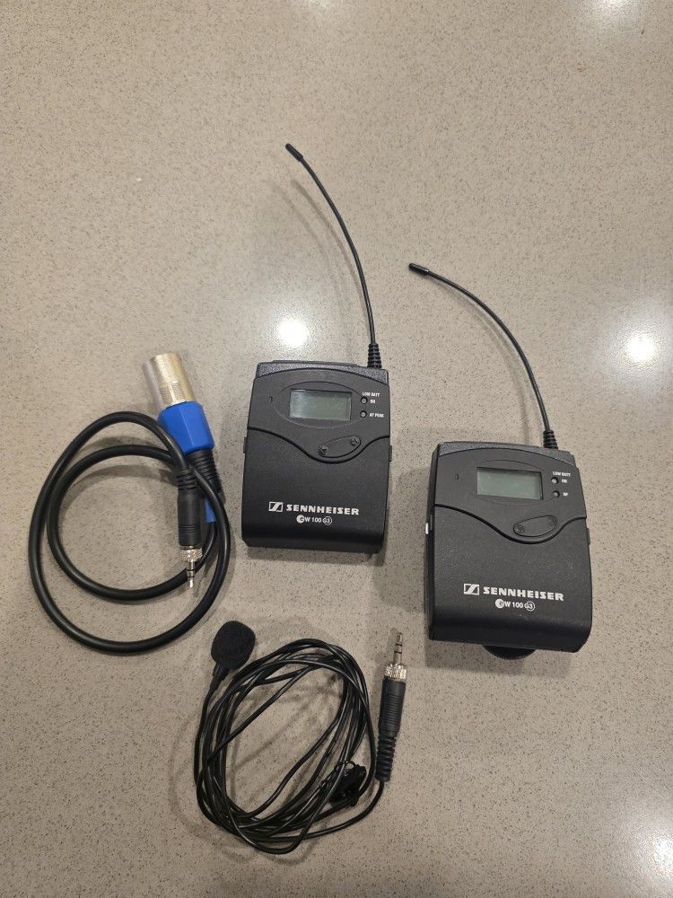Selling a Sennheiser EW 100 G3 Wireless Lavalier Microphone System in like new condition. This is a professional wireless lav mic kit widely used for video production, interviews, podcasts, and live presentations. Everything works perfectly and has been very lightly used. Includes: SK 100 G3 Bodypack Transmitter EK 100 G3 Camera Receiver Sennheiser Lavalier Microphone Mount / clip accessories Cables Windscreen Reliable UHF wireless system with excellent sound quality and strong signal range. Great for filmmaking, YouTube, interviews, and event production. Condition: Like new – fully functional, very clean.