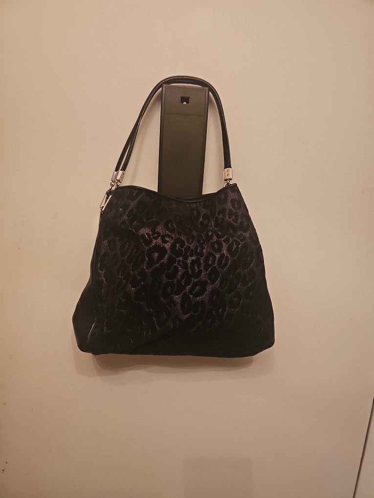 Blk Jaquered Coach vintage Bag Lthr Suede