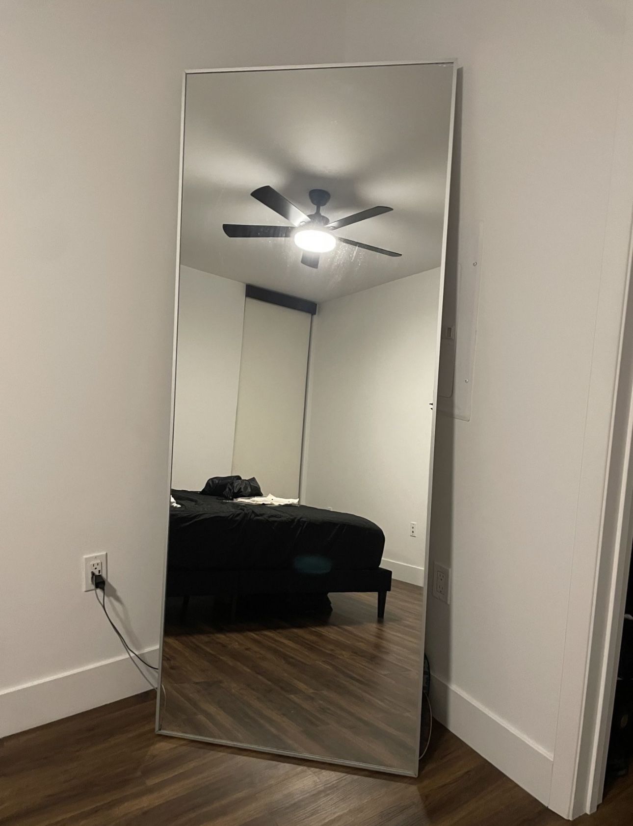 Silver metal mirror 78”x30” One small crack on bottom left corner
