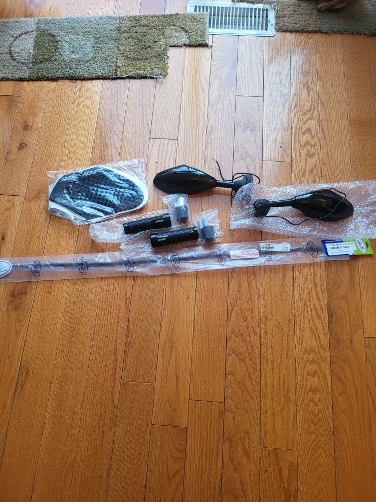 Motion pro clutch cable= $20 7/8 22mm handlebar grips= $40 Oem mirrors with signal light= $100 Tank protector pads= $10 Led turn signal aftermarket mirrors= $40 Handlebar grips won't fit on my bike 09 zx10r, dunno which bike model & years that handlebar grips will fit. They r all new parts
