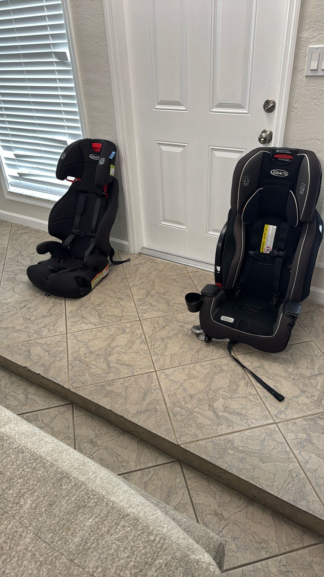 2 car seats like new . We no longer need them. For Kids 20 to 60 pounds Graco Milestone $60 Graco Tranzitions. $40 No stains, perfect condition. The price is low because i need them gone..