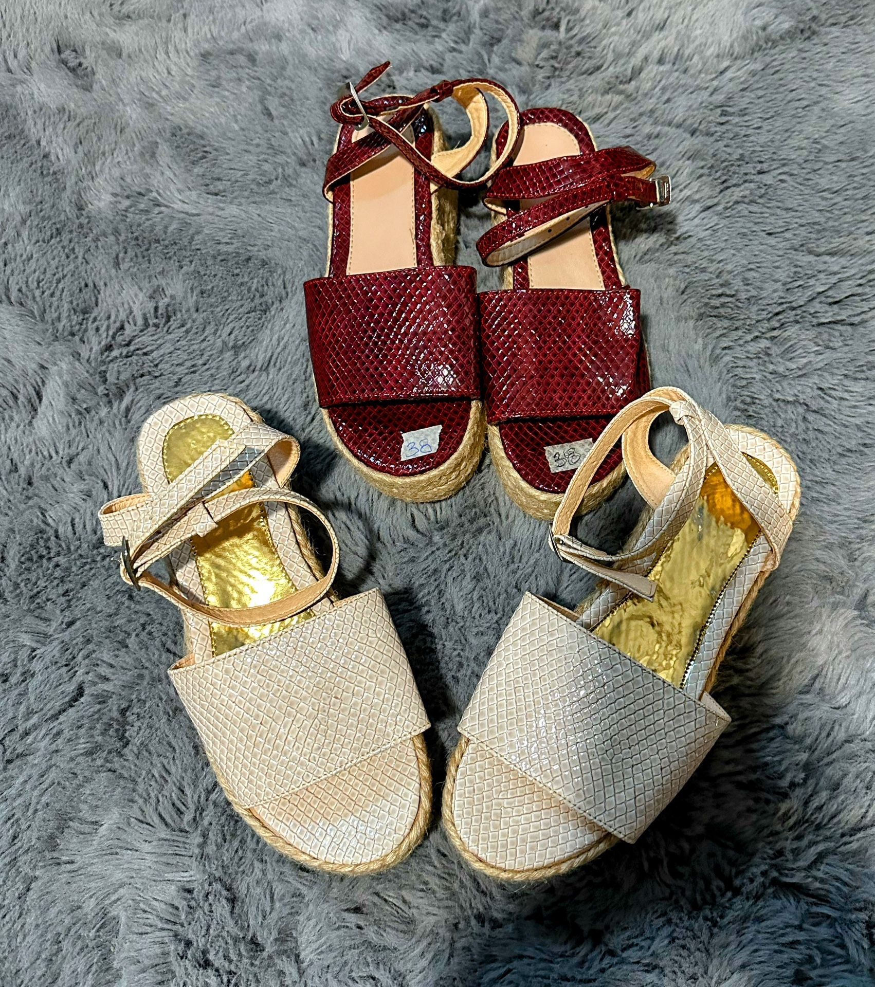NEW Espadrille sandals Never used Burgundy are size 38= women’s 7.5 US Tan are size 39= women’s 8.5 U.S. 2 for $30 OR $20 each. Not budging on price since I paid $45/ each. Local meet up by Southland Mall in Hayward