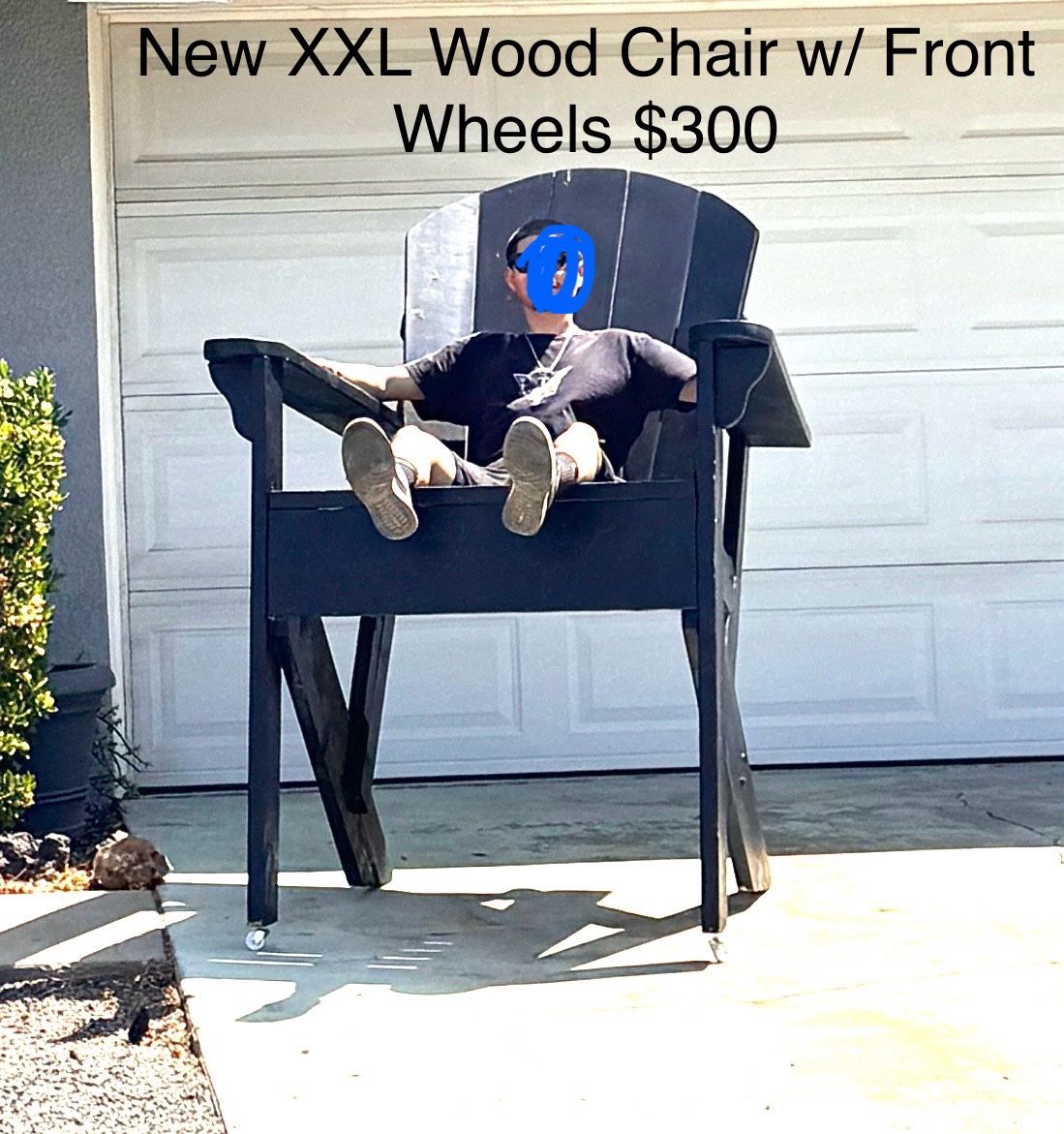 This is a Big wood chair with 2 front wheels. New. Asking $300 OBO. All offers considered. Can be used for Marketing by adding business name on chair and adding to store front or just to use at home for the kiddos for pictures. Feel free to message if you have any questions. Must pick up.