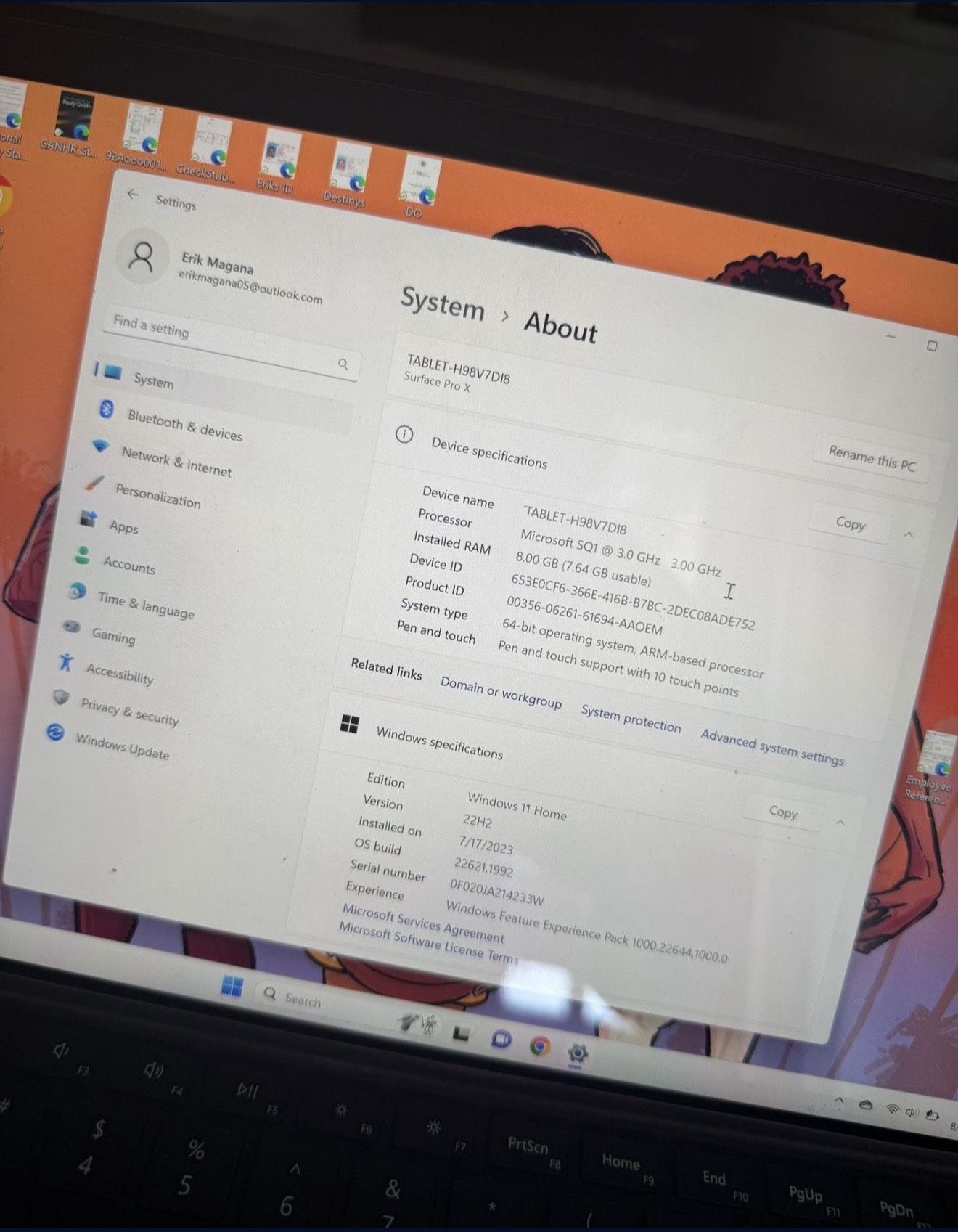 Surface Pro X - 13" Touch Screen (Platinum) • Microsoft SQ1 Processor • 8GB RAM • 128GB SSD • Original Microsoft keyboard included • Protective case included • No charger included (USB-C charger compatible)