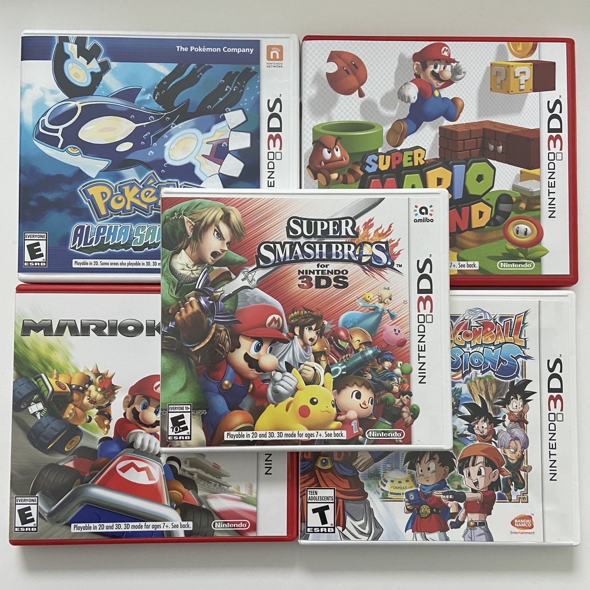 mario kart 7, smash bros, pokemon alpha sapphire, mario 3D Land, dragon ball fusions