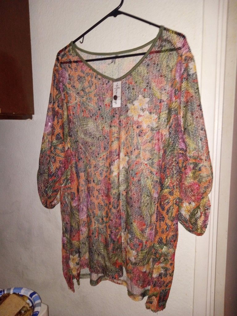 Women's 2x multi colored 3/4 sleeved blóuse brand new never worn tags still attached $59.00 in stores