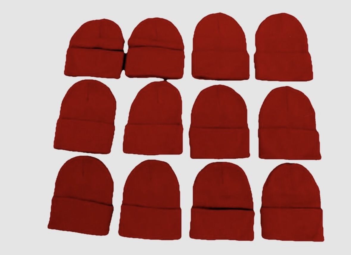 Lot of 12 winter cap hat beanie knit ski hat red One size Fits All NWOT Folding cuff for adjustable fit Or wear it slouchy. Red 100% acrylic NEW without tags Pick up in Boca Raton near Glades Road and the Turnpike off Boca Rio Road